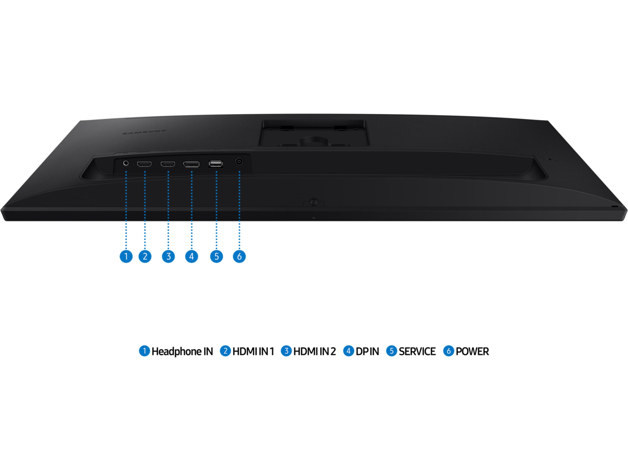 Hodetelefoner (mini-jack), DisplayPort 1.2 (HDCP 2.2), 2 x HDMI (HDCP 2.2)