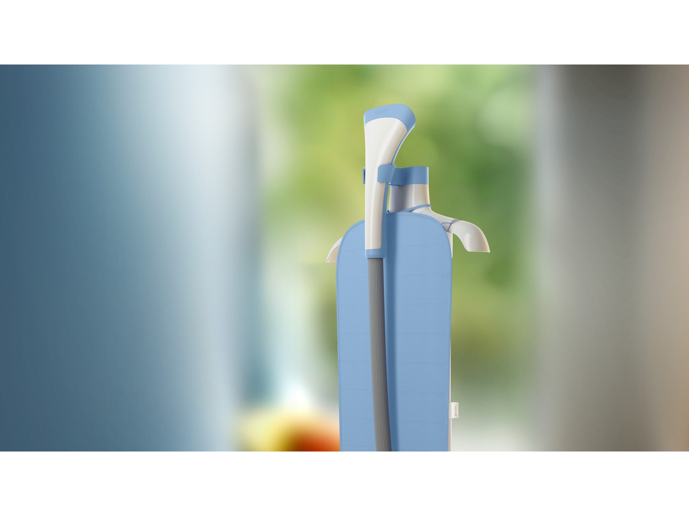 Philips 1000 Series STE1030/20 Stående tøydamper Enkel fjerning av skrukker på alle tekstiler Langvarig damp med en vannbeholder på 1,8 l Avtakbar vannbeholder på 1,8 liter Integrert StyleMat 3 dampinnstillinger 36 g/min kontinuerlig damp Fjerner opptil 99,9 % av bakteriene*
