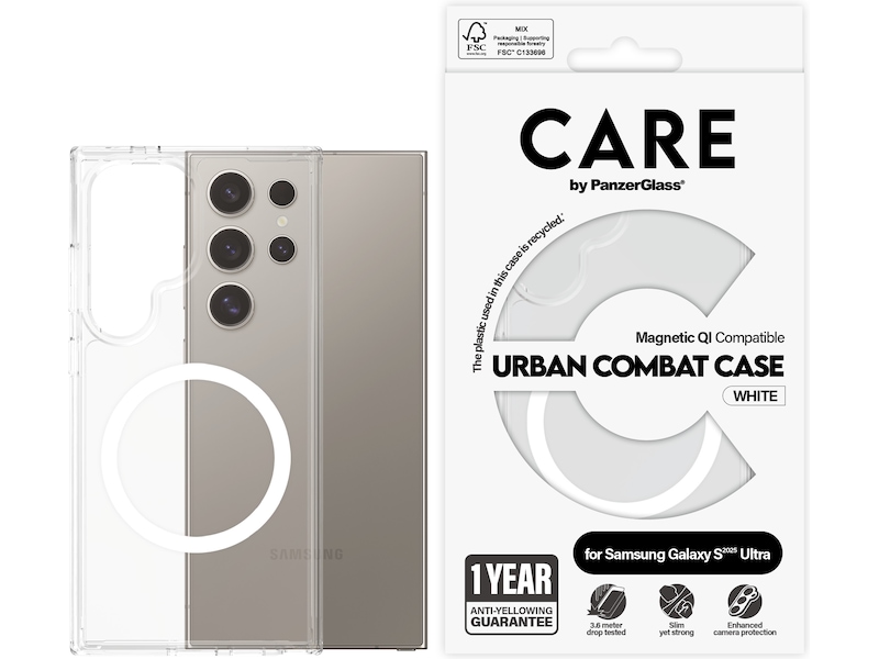 PanzerGlass CARE Galaxy S25 Ultra Urban Combat Qi deksel (hvit)