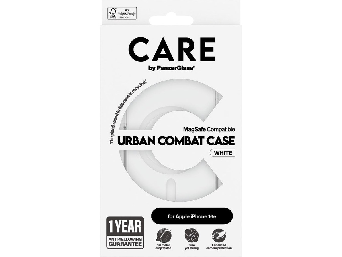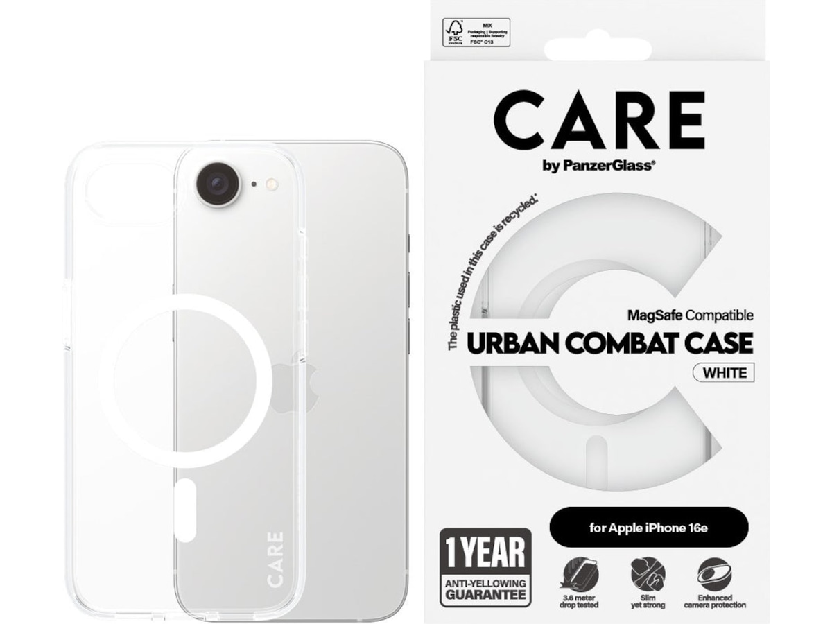 PanzerGlass CARE iPhone 16e Urban Combat MagSafe deksel (gjennomsiktig/hvit)
