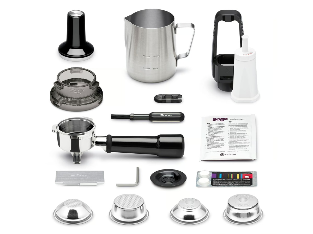 Kaffemaskinstilbehør Mugge av rustfritt stål (480 ml), Ett-lags filterkurv, Vannfilter, Dobbeltvegget filterkurv, Renseverktøy, Razor-dosejusteringsverktøy