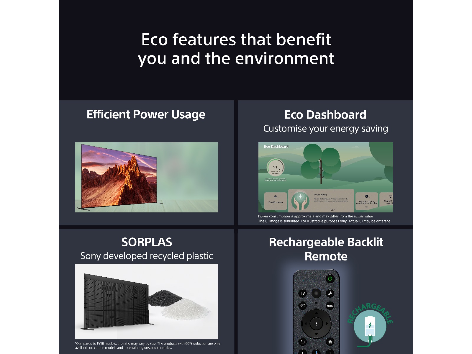 Egenskaper Tilgangssnarvei, Innebygd Chromecast, CalMAN automatisk kalibreringsstøtte, Audio Description (AD), XR Triluminos Pro Display, ECO Dashboard, Tekstforstørrelse, Søvntidtaker, PlayStation Remote Play, Støtte for Apple AirPlay, Dynamic Backlight Control