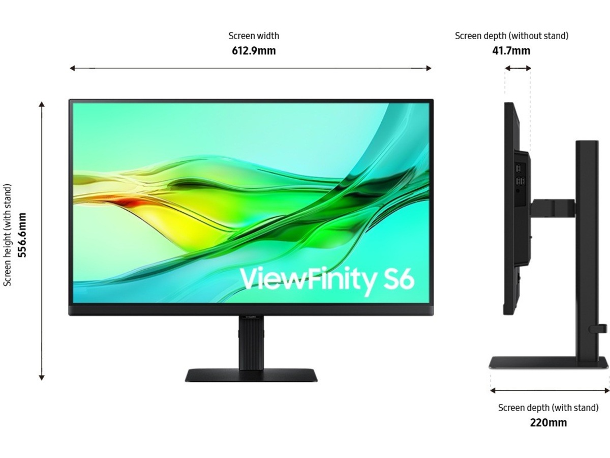 Størrelses- og vektdetaljer Uten stativ - bredde: 61.29 cm - dybde: 4.16 cm - høyde: 36.77 cm - vekt: 3.6 kg, Med stativ - bredde: 61.29 cm - dybde: 22 cm - høyde: 55.66 cm - vekt: 6.1 kg