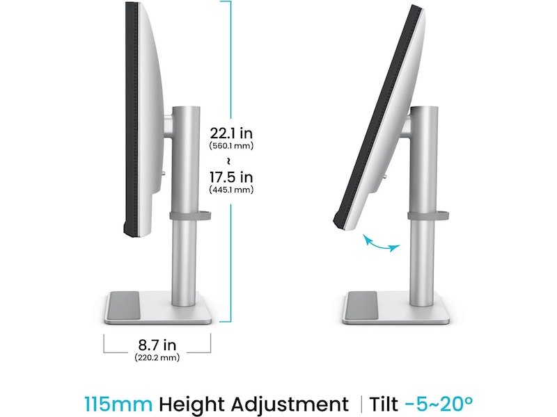 Med stativ (liggende orientering, laveste posisjon) - bredde: 61.38 cm - dybde: 22.02 cm - høyde: 44.51 cm - vekt: 8.2 kg, Med stativ (portrettorientering) - bredde: 36.77 cm - dybde: 22.02 cm - høyde: 68.93 cm - vekt: 8.2 kg, Uten stativ - bredde: 61.38 cm - dybde: 8.35 cm - høyde: 36.77 cm - vekt: 5.14 kg, Med stativ (liggende orientering, høyeste posisjon) - bredde: 61.38 cm - dybde: 22.02 cm - høyde: 56.01 cm - vekt: 8.2 kg
