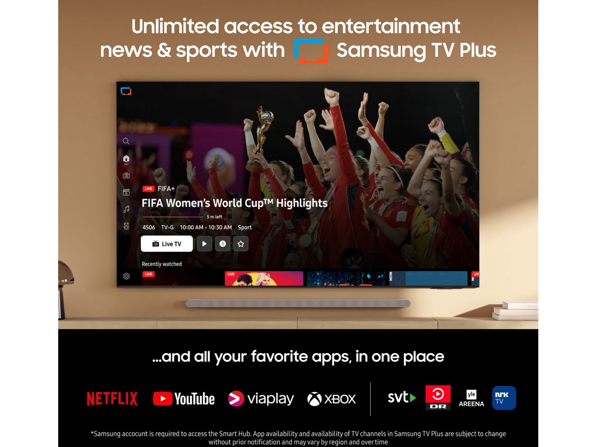 - Kostnadsfri tilgang til filmer, serier, sport og nyheter med Samsung TV Plus.