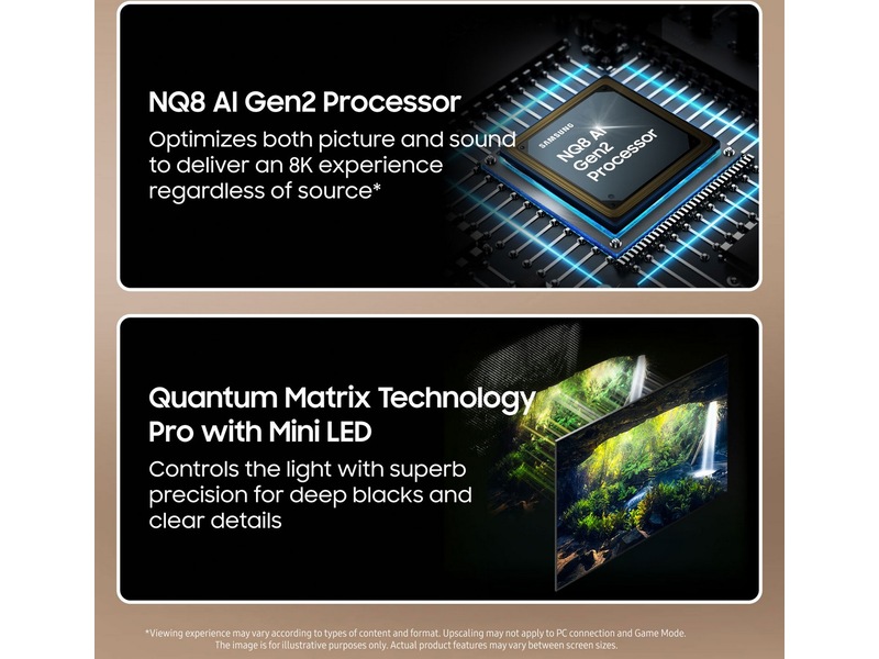 AI-drevet 8K-opplevelse som optimaliserer både bilde og lyd, og gir en8K-opplevelse uansett kilde.*