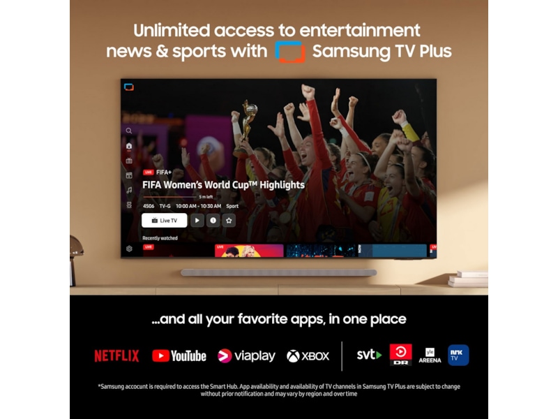 - Kostnadsfri tilgang til filmer, serier, sport og nyheter med Samsung TV Plus.