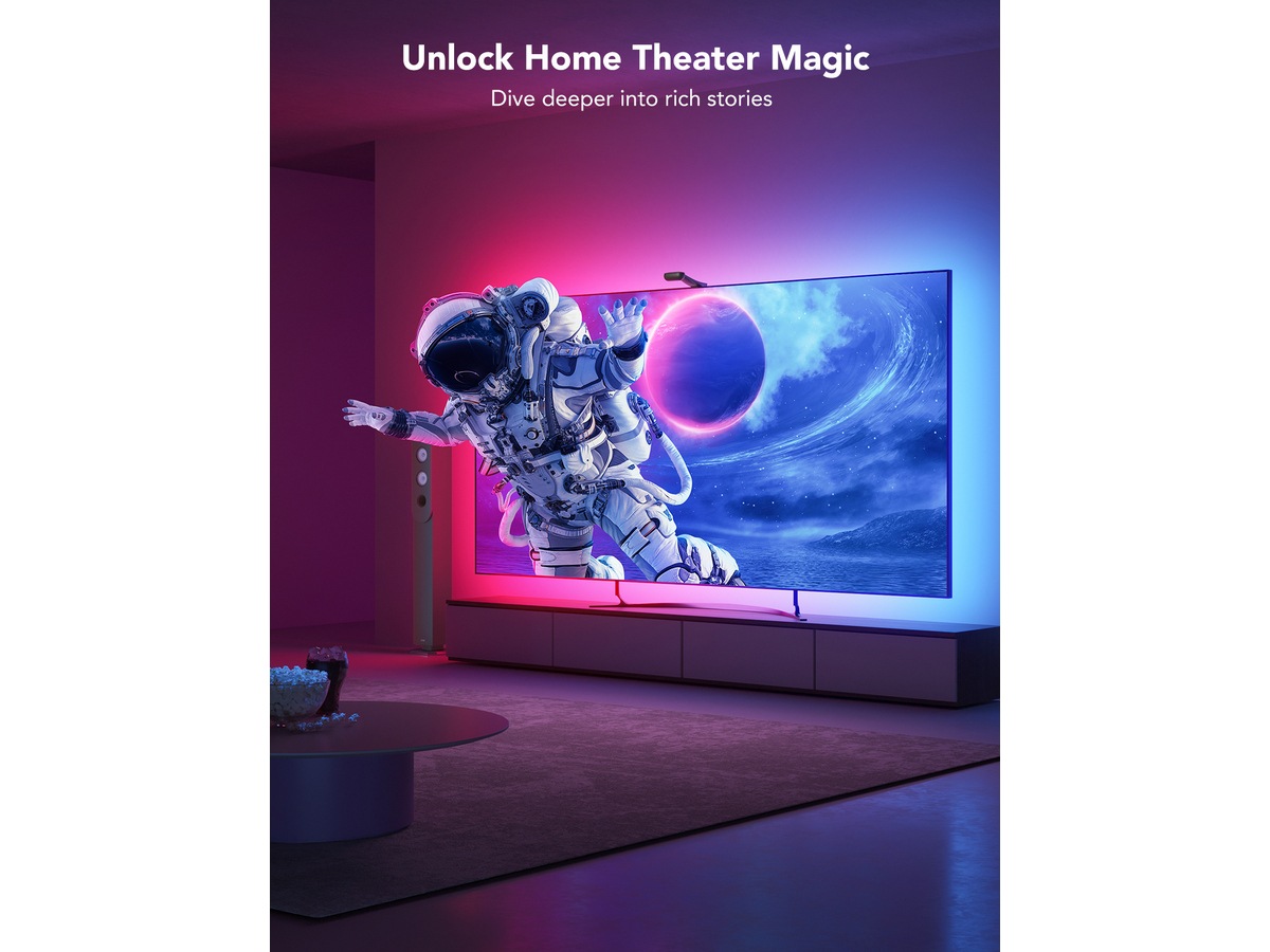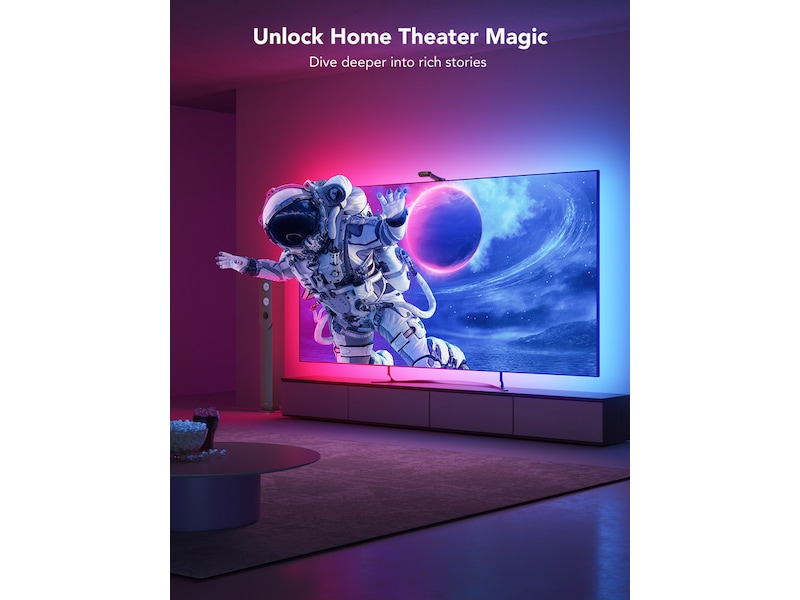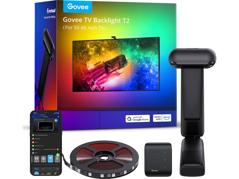 Talestyring, Appstyrt, DreamView Syncing-teknologi, Design med to kameraer, Govee Envisual Color-Match-teknologi, Kompatibel med 55 - 65" TVer, Innebygd EU-strømplugg, 4 musikkmoduser