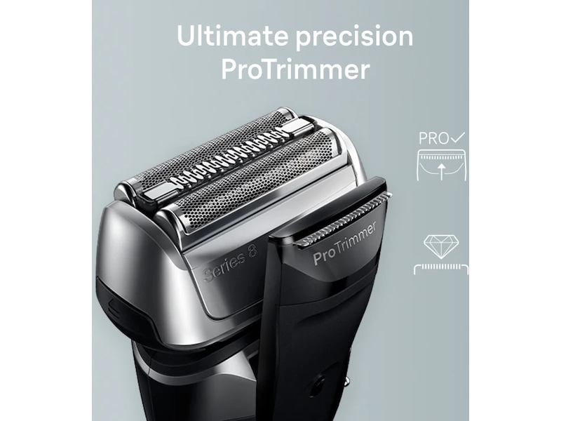 Wet & Dry-barbermaskin Braun Series 8 8517s med ladestativ og reiseetui