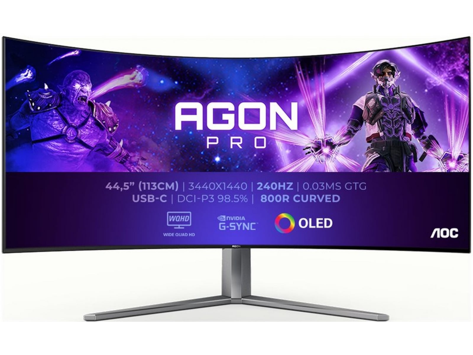 Løft spillopplevelsen din til enestående nivåer med AGON PRO AG456UCZD. Denne bemerkelsesverdige buede skjermen har et OLED-panel, WQHD-oppløsning (3440x1440), en lynrask oppdateringsfrekvens på 240 Hz og en forbløffende responstid så lav som 0,03 ms GtG. Omslutt deg med livlige HDR-bilder, med en naturlig 10-bits fargedybde på 1,07 milliarder farger, sammen med eksepsjonell DCI-P3 fargespekterdekning. AGON PRO 45" – hvor gaming når nye høyder.