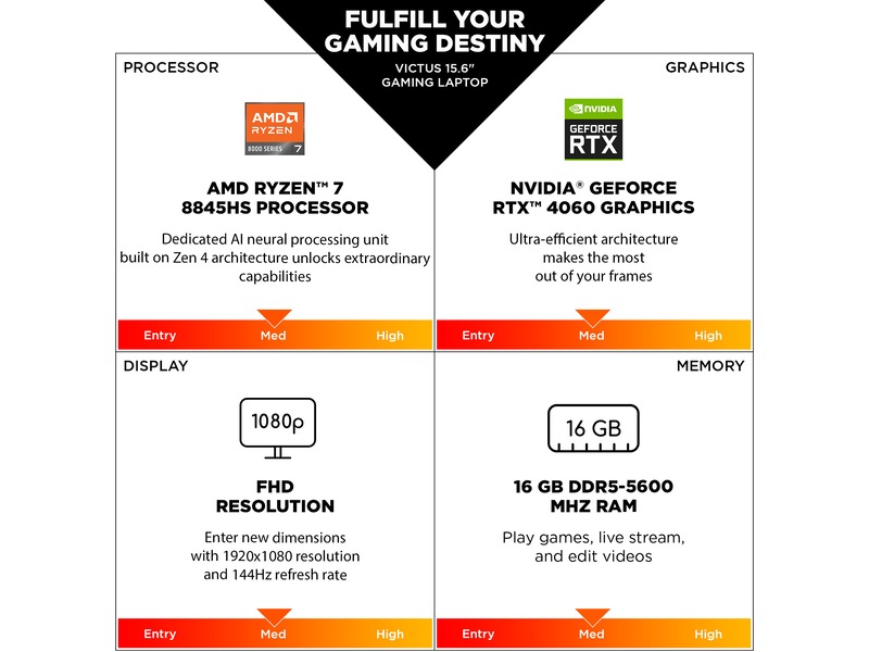 En bærbar HP Victus PC erlaget for PC-gaming på sitt beste. Denne slanke maskinen har en kraftig AMD-prosessor og NVIDIA-grafikk. Designet til den bærbare PC-en er like imponerende som maskinvaren med nok av farger å velge mellom , oppdatert kjøling og et HD-kamera med temporal støyreduksjon.