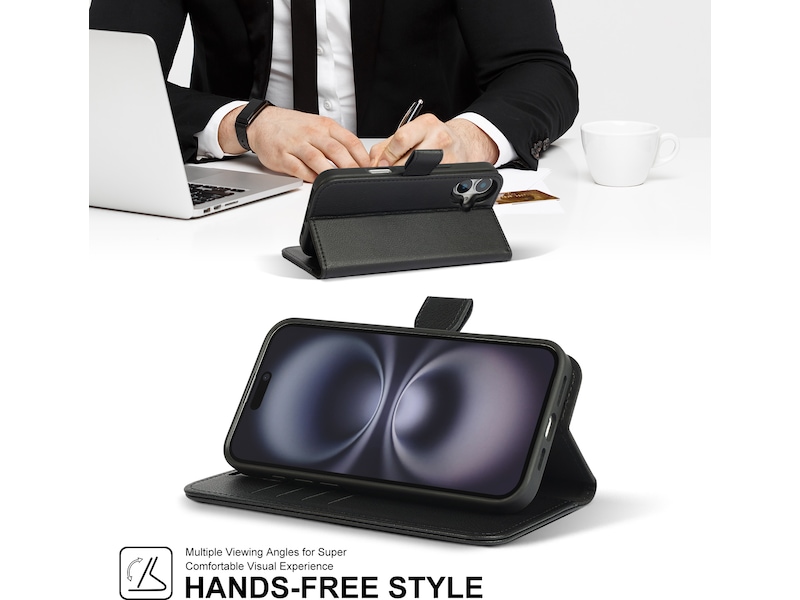 iiglo iPhone 16 Plus 2-i-1 Lommebokdeksel (sort)