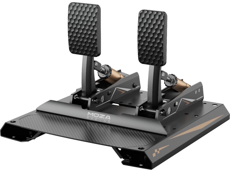 CRP2 sim-racingpedalene har en minimalistisk design med jevne kurver og et sofistikert svart og gullfargeskjema som utstråler konkurransekraft. De sekskantede designelementene på pedalflaten symboliserer stabilitet, balanse og allsidighet. Smart skjulte ledninger, fjærer og pedalskruer sørger for et rent og estetisk tiltalende utseende.