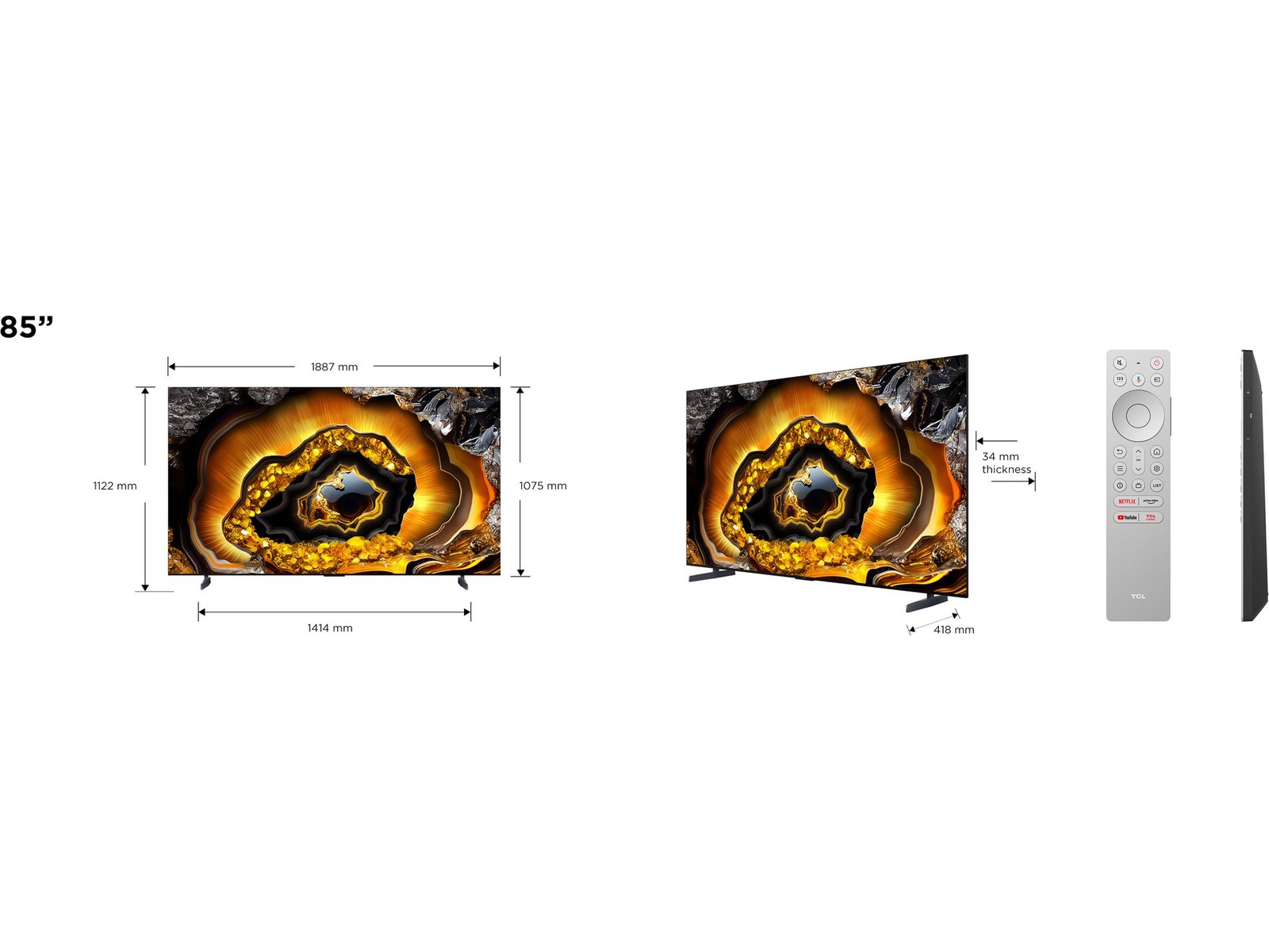 TCL Premium QD-Mini LED er et visuelt mesterverk som presenterer forbløffende levende bilder med naturtro farger og et ekstremt høyt kontrastforhold. Den har også høyere maksimal lysstyrke, et bredere fargespekter, en større skjermstørrelse og en lengre levetid, noe som gjør den til en ledende skjermteknologi.