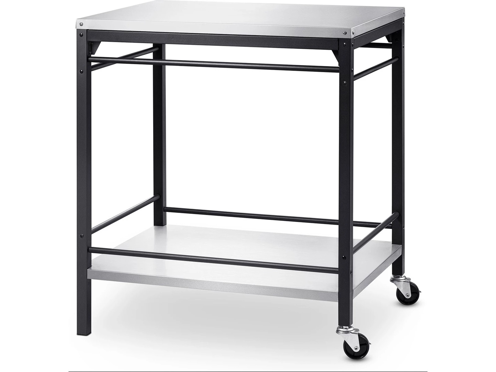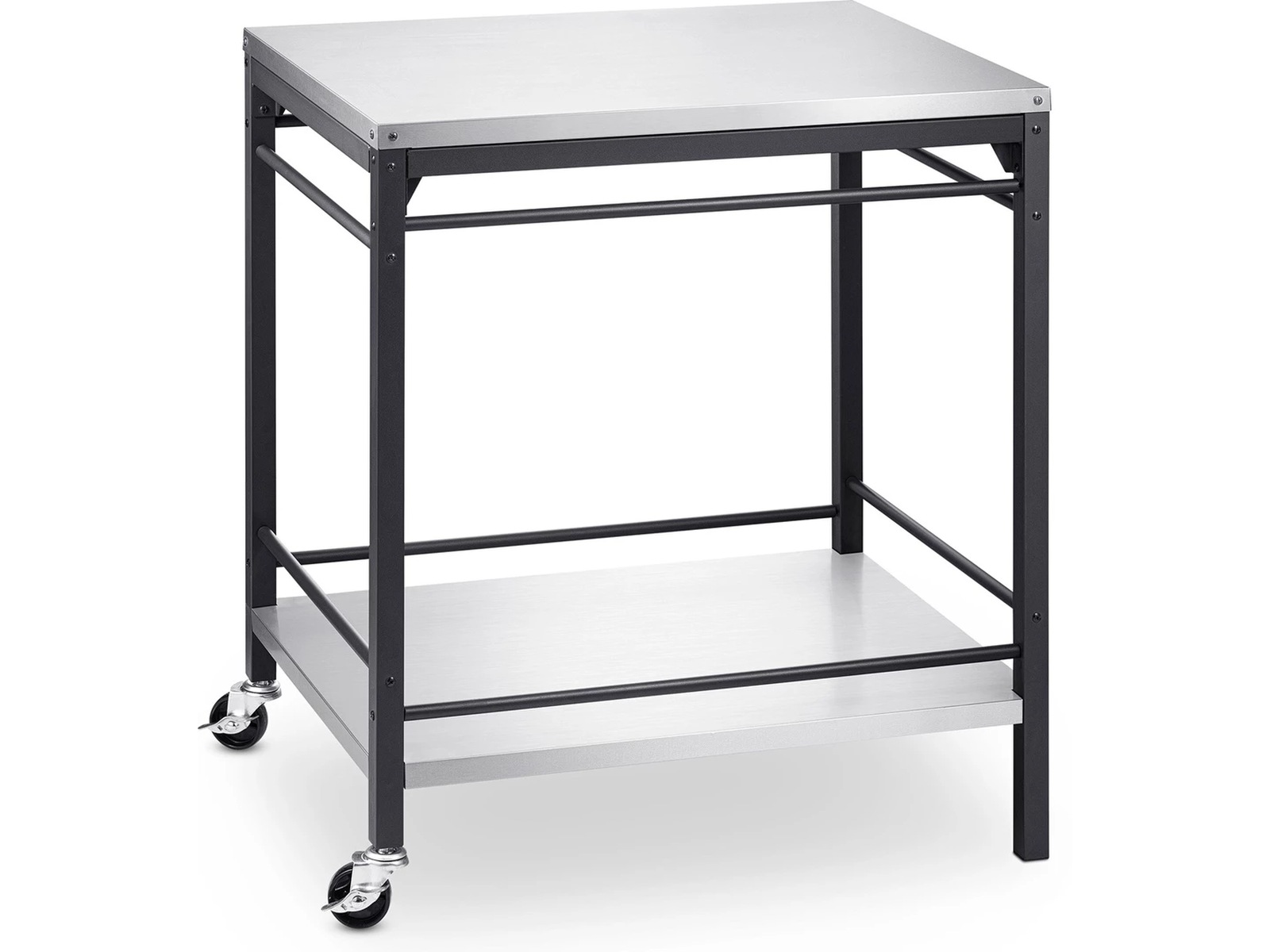 Austin and Barbeque Sidebord i rustfritt stål passer til utekjøkkenet og til bruk ved siden av grillen på terrassen. Her kan du tilberede maten, avlaste under matlagingen og oppbevare redskaper. Sidebordet leveres med en hylle og en benkeplate, begge i slitesterkt og rengjøringsvennlig rustfritt stål. Sidebordet er også utstyrt med hjul for enkel flytting.