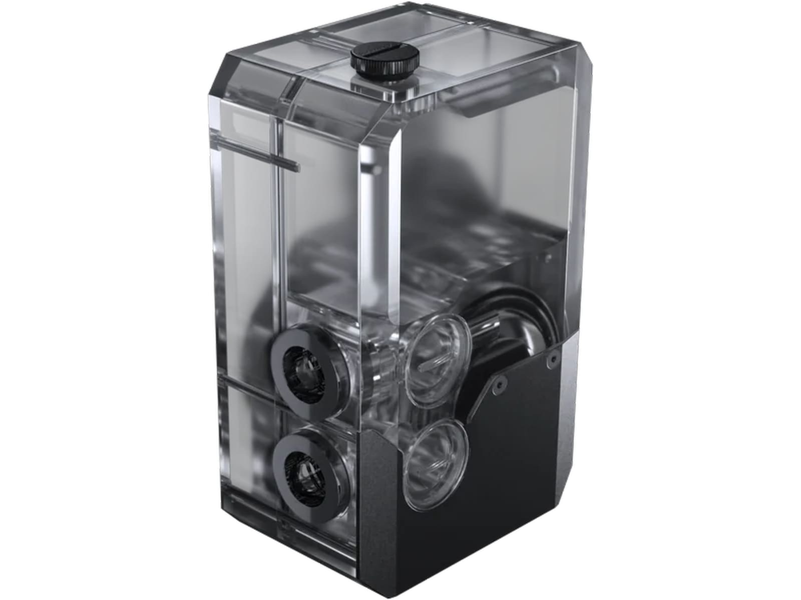 Glacier EZ-Fit 140RES-D5-reservoaret er designet for kompakt allsidighet, med et fleksibelt monteringssystem som gjør det enkelt å installere på hvilken som helst vifte i forskjellige orienteringer. De integrerte koblingene er strategisk plassert for å tilby maksimal frihet i loopsoppsettet, slik at du enkelt kan tilpasse oppsettet ditt.
