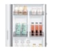 Utnytt oppbevaringsplassen i døren. Fire dørhyller som kan justeres individuelt og flyttes opp eller ned for oppbevaring av alle flasker, kartonger og andre matvarer i alle størrelser og fasonger. De står trygt og vil ikke falle ut når du åpner eller lukker kjøleskapet.