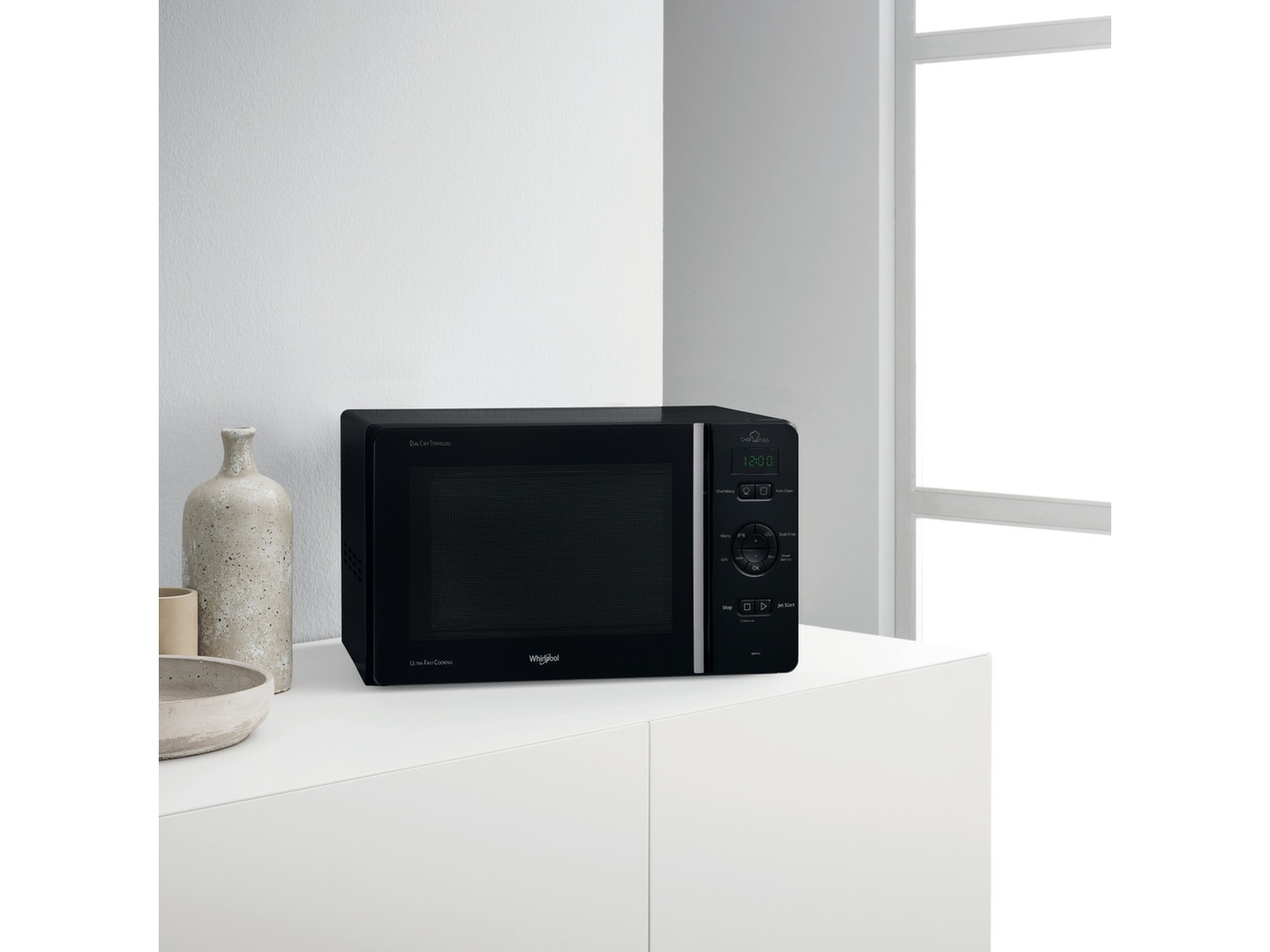 Denne frittstående mikrobølgeovnen fra Whirlpool har følgende funksjoner: Grillfunksjon. Crisp-funksjon, for utrolig sprø quiche, pizza og paier.
