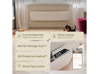 Denne smarte panelovnen kombinerer minimalistisk design med avansert varmeeffektivitet. Med et X-aluminium varmeelement fordeles varmen raskt og jevnt, samtidig som overflatetemperaturen holdes lav (maks 51 °C). Teknologiene Mill PID Wattage Tech™ og Mill Predictive Heating™ sørger for optimal energibruk og redusert strømforbruk. Ovnen er stillegående og har en åpent vindu-funksjon som automatisk tilpasser varmen for økt energieffektivitet.