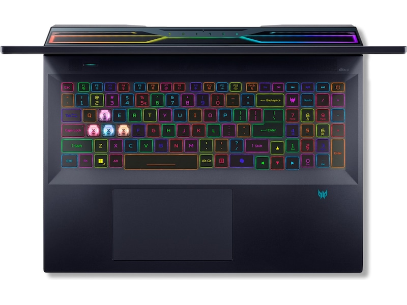 Det RGB-bakgrunnsbelyste tastaturet lyser opp med Mini LED-bakgrunnsbelysning som er lysere, krever mindre strøm og er mer ensartet i fargen (med mindre gjenskinn) enn tastaturer uten Mini LED-lys. Få tilgang til PredatorSense™ slik at du kan tilpasse RGB ytterligere til din egen stil.