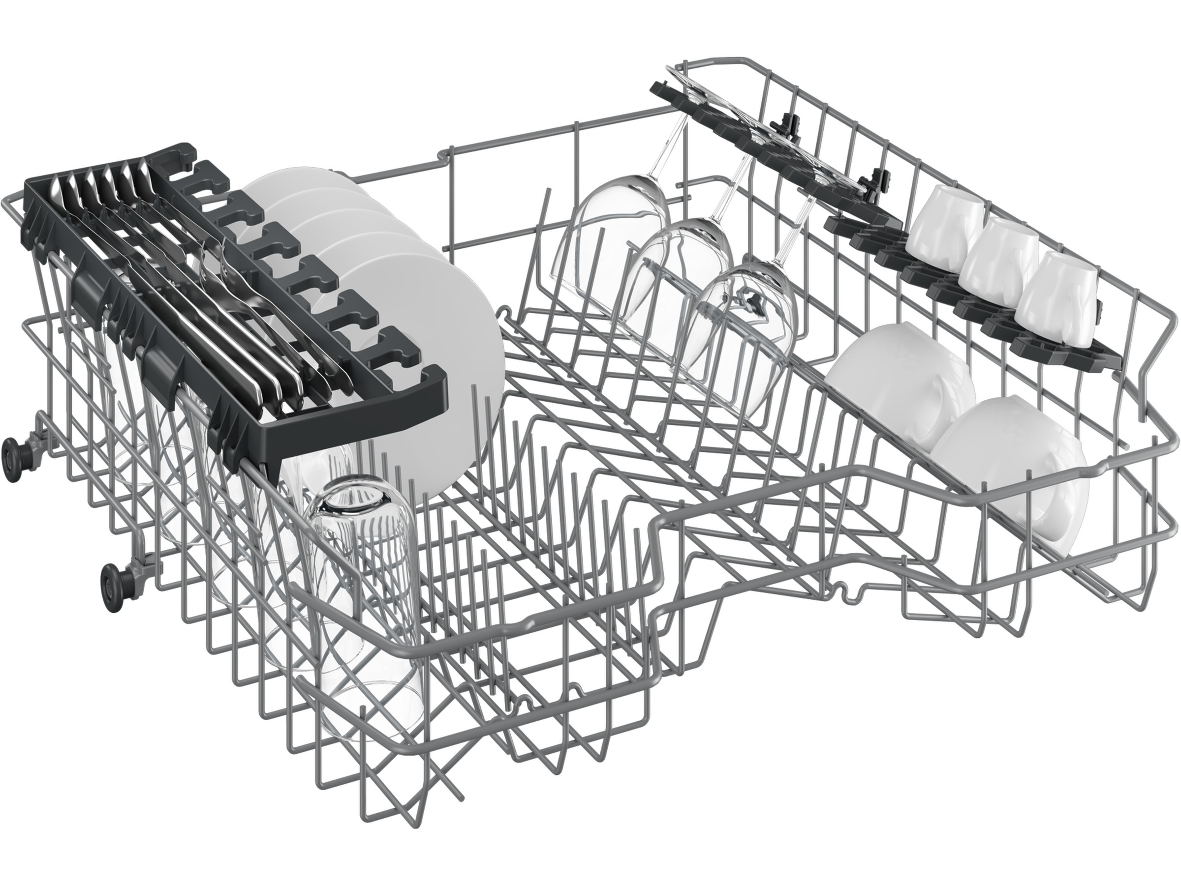 Hver gang du lager mat, bruker du panner og gryter i forskjellige størrelser, og du trenger en oppvaskmaskin som forstår dette. Med den foldbare tallerkenstøtten kan du lett fjerne tallerkenrom for å få plass til de største pannene og grytene. Det å måtte vaske de største gjenstandene for hånd hører fortiden til, og godt er det!