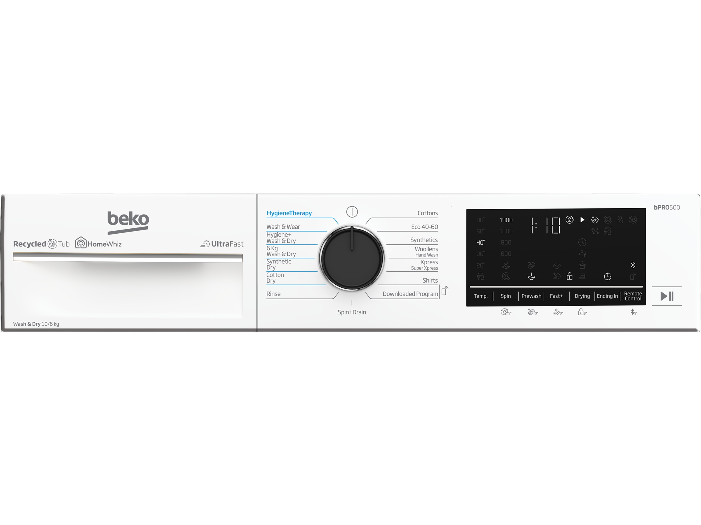 Beko UltraFast, er et virkelig raskt program som kan vaske og tørke 6 kg klær på bare 3 timer og 33 minutter. Ved å bruke en forbedret oppvarming, en kraftig vifte og en spesialdesignet varmeveksler, garanterer dette at du er klar på kort tid. Den klarer det til og med å vaske og tørke full belastning men fortsatt holde energinivå A.