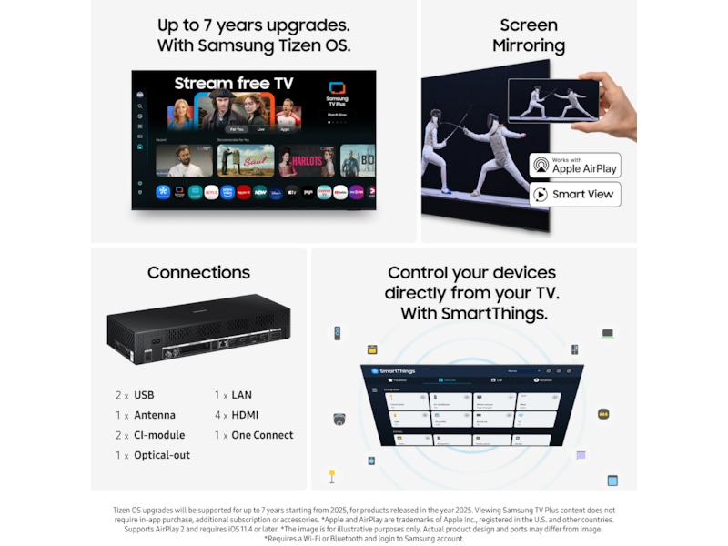*Gjelder ved kjøp av utvalgte 2025-modeller Samsung TV-er og projektorer på samsung.com og hos utvalgte forhandlere i perioden 30.04.2025 – 31.03.2026. Underlagt begrensninger, og strømmetjenestetilbudene som er inkludert kan variere i løpet av kampanjen. Se fullstendige vilkår: samsung.com/no/smartstart