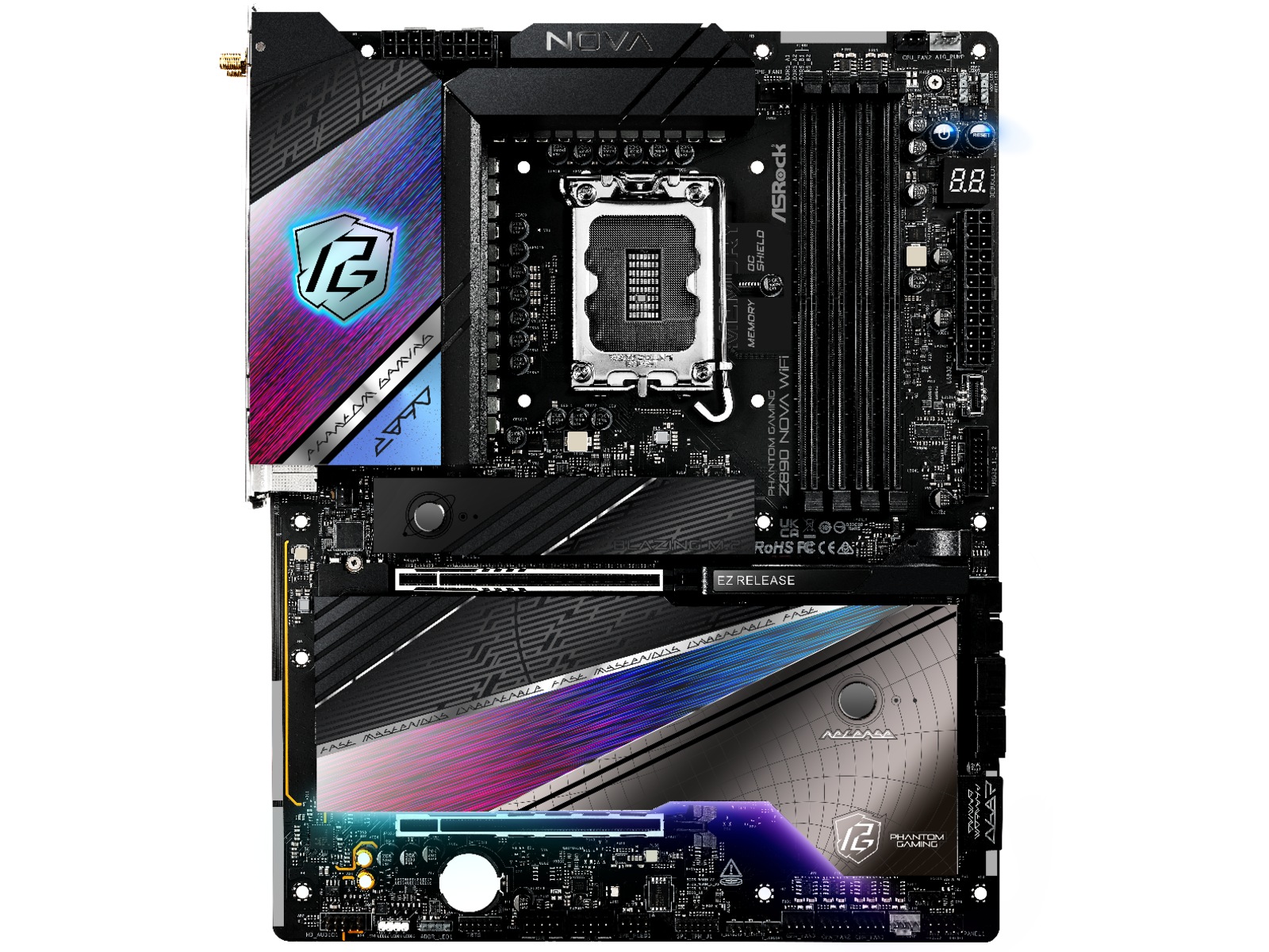 DIY Friendly Design, ASRock Hyper BCLK Engine, EZ PCIe-utgivelse, ASRock My Favorites in UEFI, ASRock Lightning Gaming Ports, ASRock Polychrome RGB, ASRock Dr. Debug, Intel Turbo Boost Max Technology 3.0, Formontert I/O-skjerm, Nahimic Audio Enhacer, Surface Mount Technology (SMT), Tilbakestillingsknapp, ASRock Auto Driver Installer, ASRock Instant Flash, 8 Layer PCB, ASRock EZ Mode, Intel Thermal Velocity Boost (TVB), Metallbakplate, Intel Hybrid Technology, CUDIMM-støtte, ASRock Full HD UEFI, Clear CMOS Button, Intel Adaptive Boost Technology (ABT), BIOS FlashBack-knapp, 2oz Copper PCB, Enlarged Heatsink Armor, Memory OC Shield, VRM-kjøledesign, Smart Power Stage (SPS) teknologi, 20K sorte kondensatorer, 20+1+2+1+1 fase strømdesign, Strømknapp |