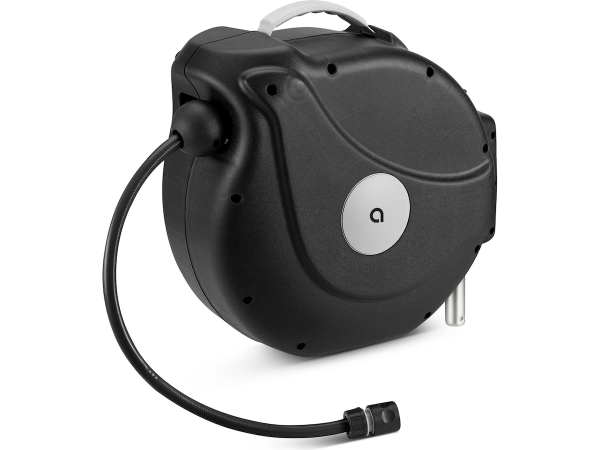 En praktisk hjelper for dine rengjørings- og vanningsbehov. Takket være den veggmonterte slangeboksen har du alltid hageslangen din tilgjengelig - og når du ønsker å flytte til en annen kran midlertidig, er den utstyrt med et praktisk håndtak for transport.