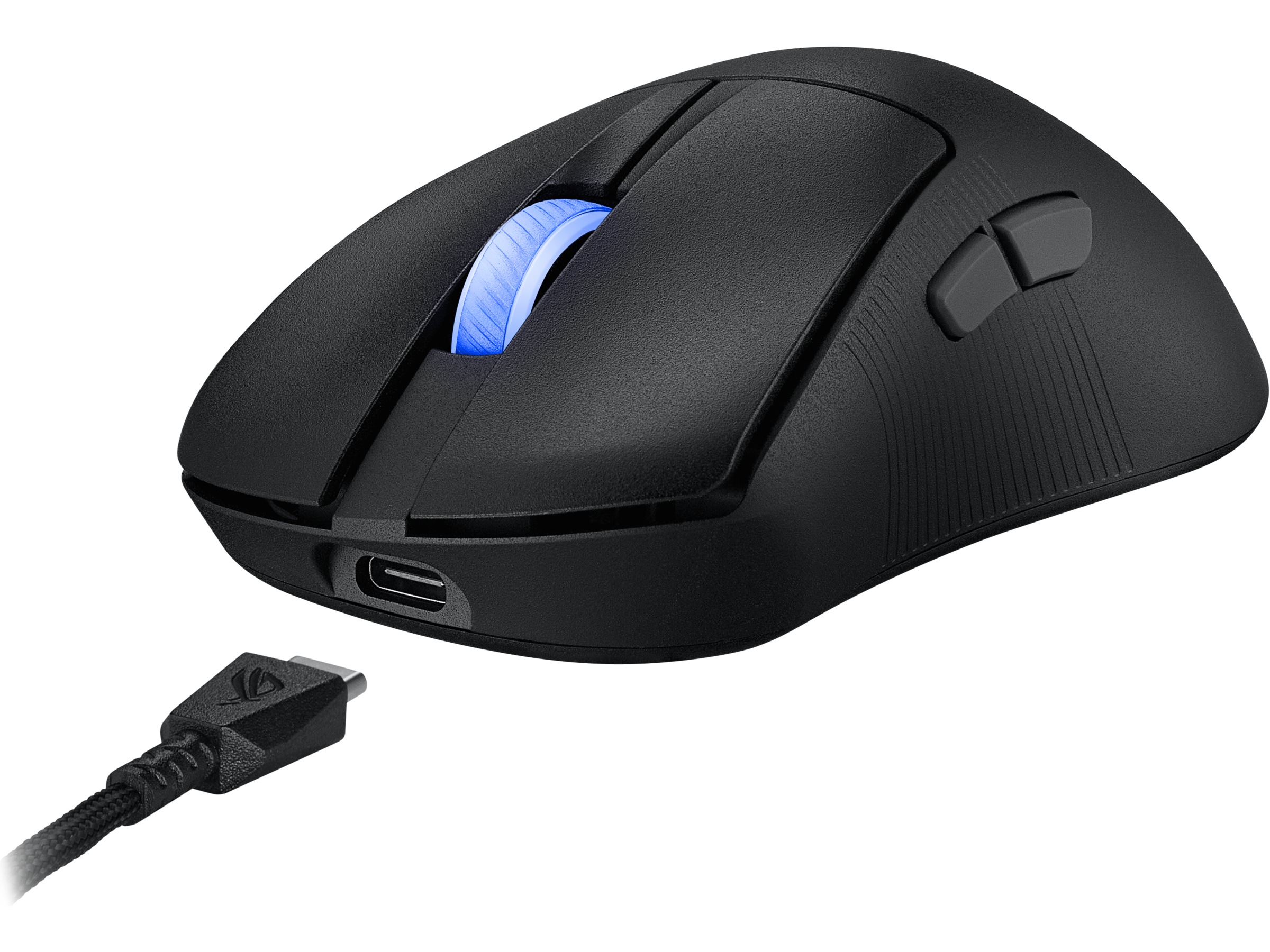 Innebygd minne, ROG AimPoint Pro optisk sensor, Håndflategrep, ASUS Aura Sync RGB LED, 100 millioner klikk, ROG Micro Switches, Klogrep, ROG SpeedNova trådløs teknologi, Glassporingssensor, Fingertuppsgrep, DPI-bryterknapp, PTFE-museføtter