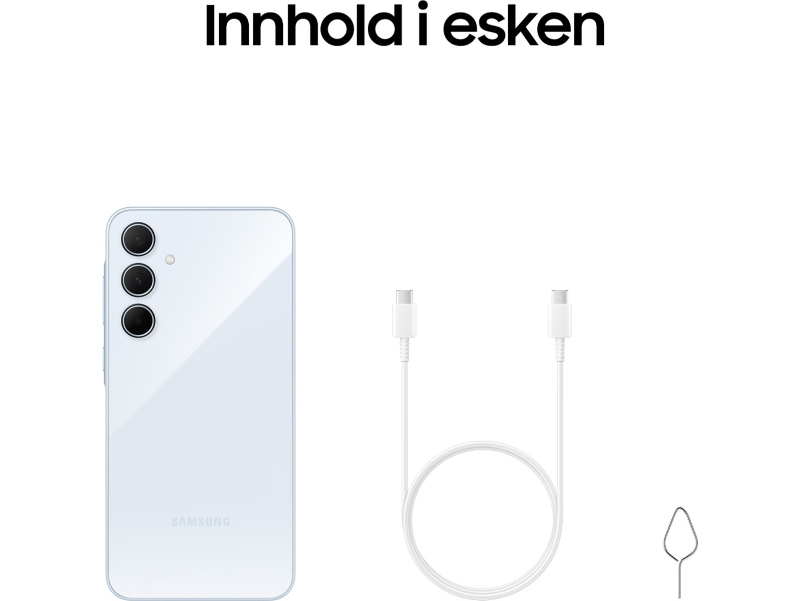 Samsung Galaxy A35 har alle funksjoner som kreves for å kunne bruke den til hva du vil, når du vil. Med ny design og lekre farger kan du glede deg over den hver dag. Dessuten har den en attraktiv pris.
