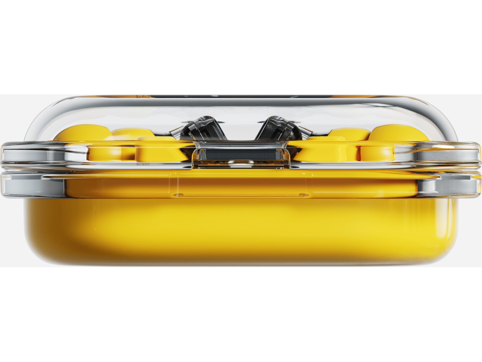 Medfølgende tilbehør 3 par blå øretupper (små, medium, stor), Ladeboks (500 mAh), USB-C ladekabel