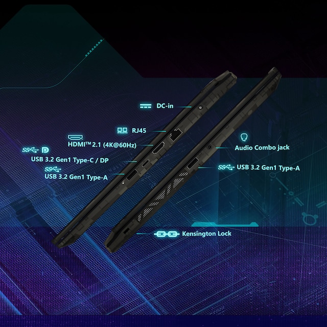 Med en vekt på 1,98 kg og 21,95 mm tykkelse er Cyborg 15 A13V perfekt for gaming på farten. Integreringen av aluminiumsmateriale på dekselet garanterer en jevn kvalitetsfølelse ved første kontakt og holder den lett.