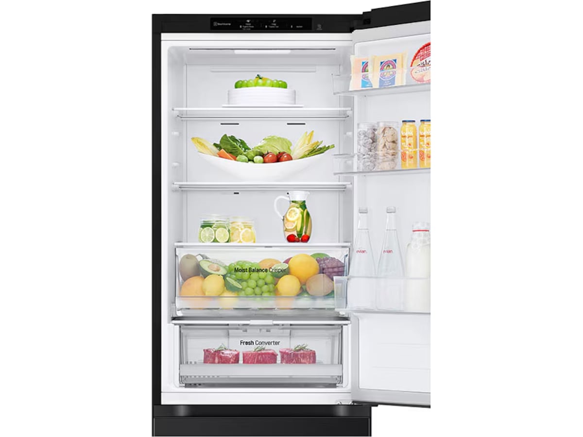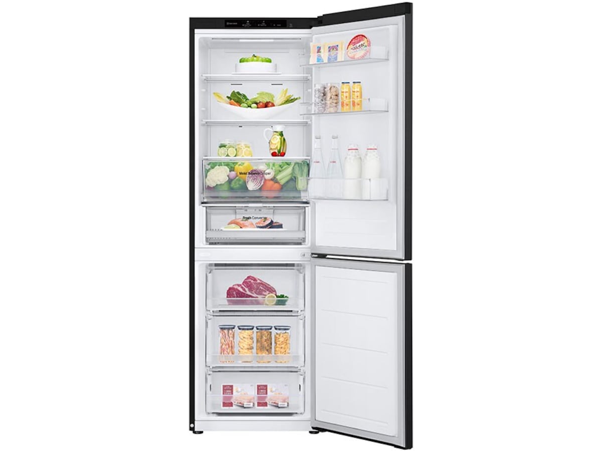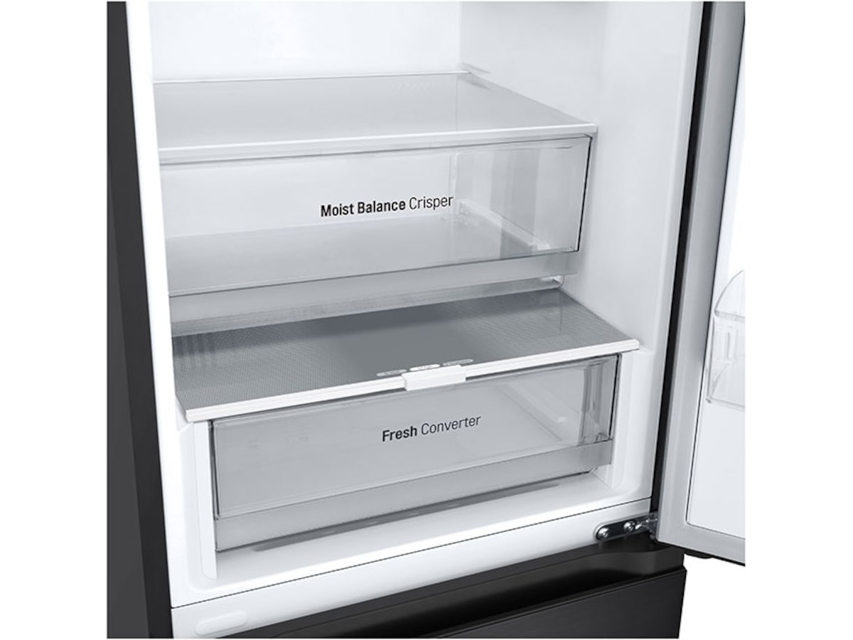 2 x hylle - justerbart herdet glass, 3 x dørhylle - gjennomsiktig, 1 x grønnsaksskuff - Fuktighetsbalanse