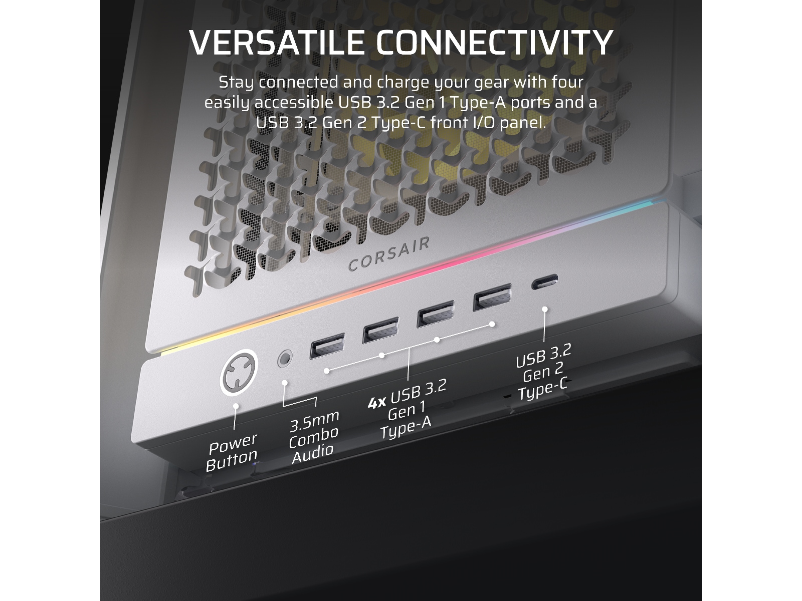 • Allsidig tilkobling – FRAME 5000D tilbyr fire USB 3.2 Gen 1 Type-A porter og et USB 3.2 Gen 2 Type-C front I/O panel. I/O portene er også blitt flyttet til bunnen av saken for å gjøre det enkelt for folk med PC-en på skrivebordet å koble til enheter.