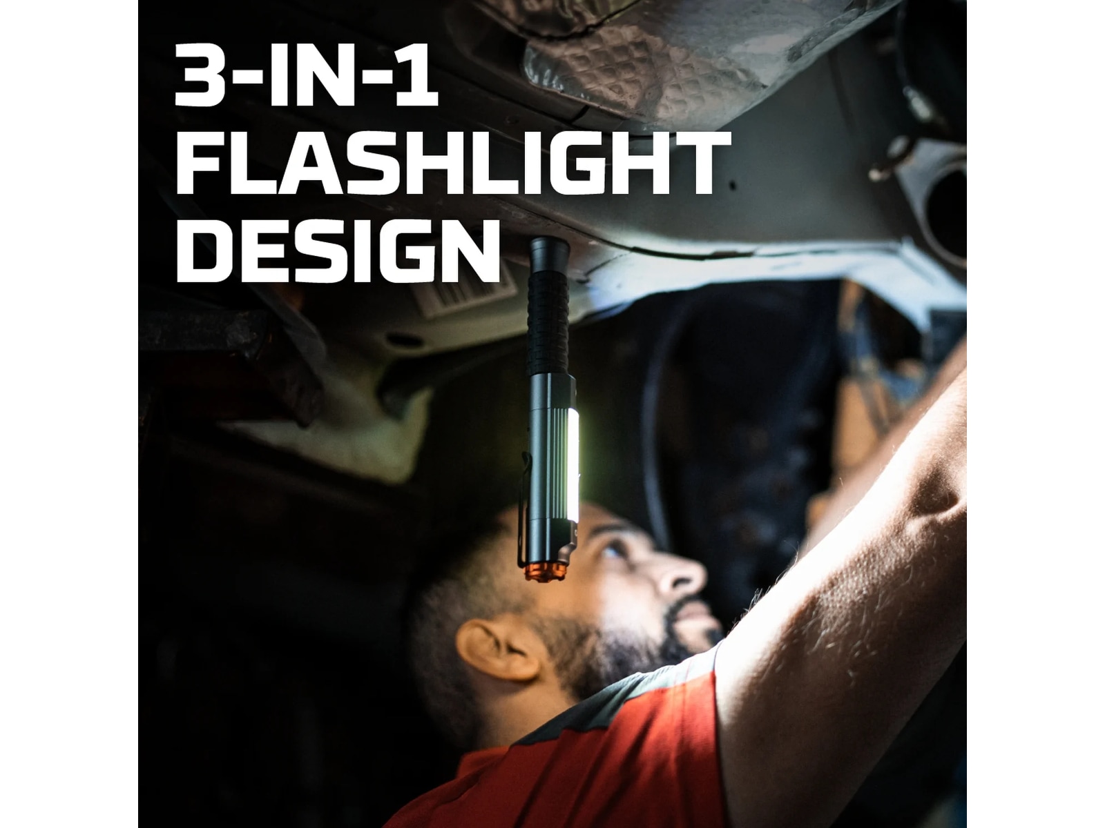 BIG Larry er tilbake og lysere enn noen gang! Den nye og forbedrede BIG Larry gir 600 lumen med C•O•B arbeidslys og 220 lumen fra topplyset. Det røde C•O•B-lyset er perfekt for nødsignaler eller nødsituasjoner langs veien. Stålklipset og den magnetiske basen gir praktiske håndfrie belysningsalternativer.