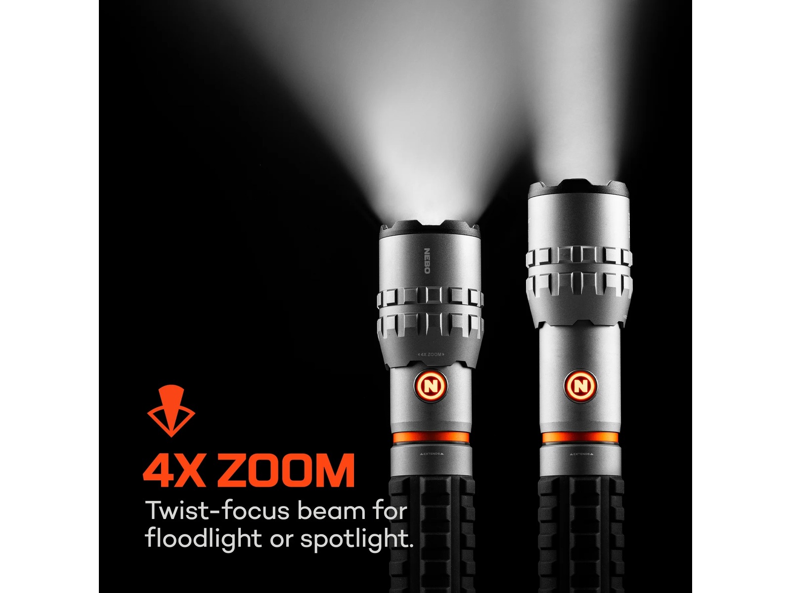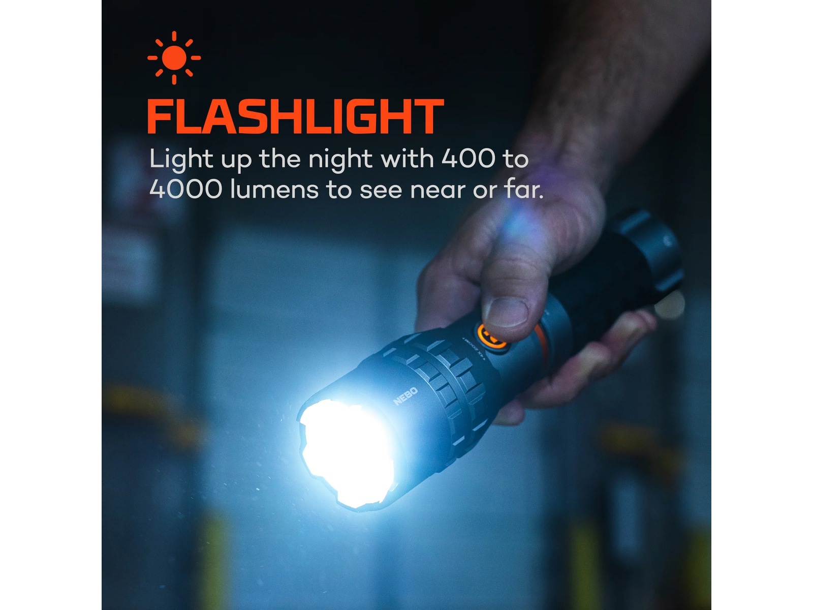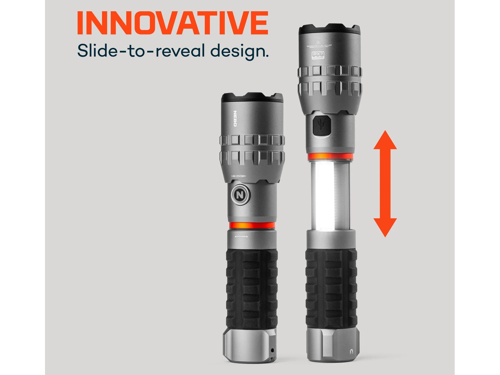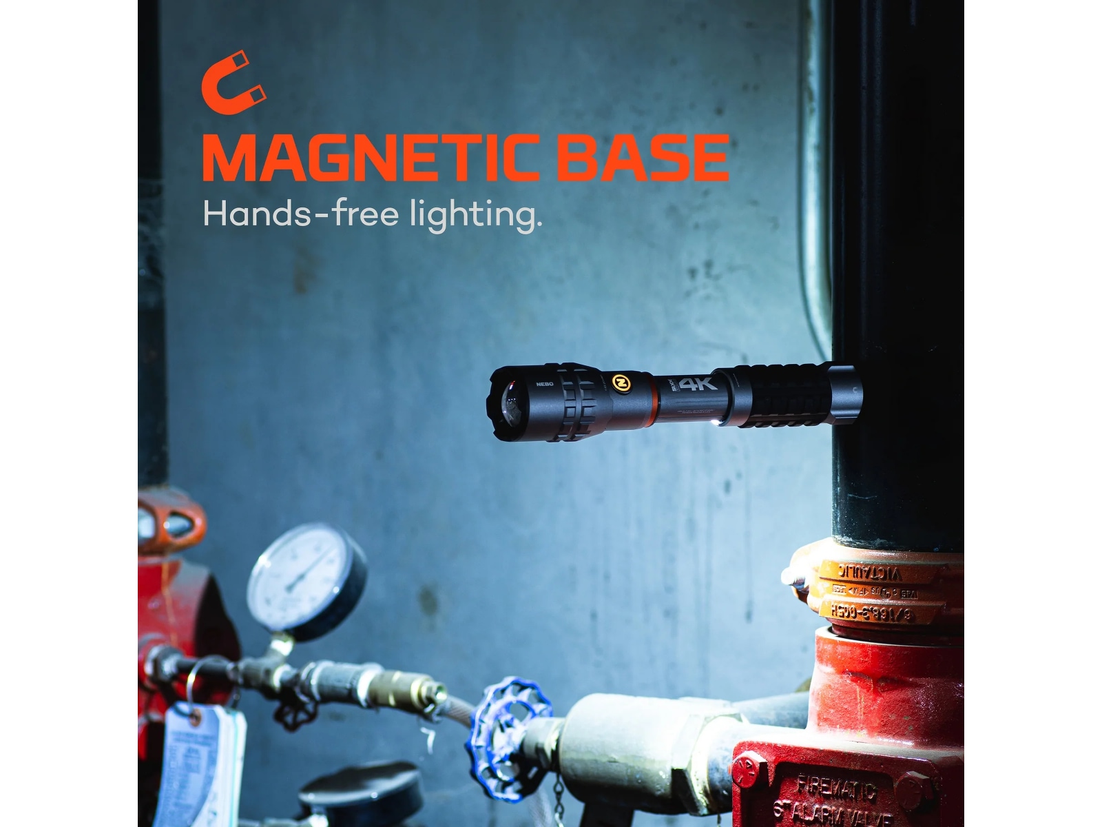 SLYDE KING 4K tilbyr en 4,000 lumen lommelykt med 4x zoom og en 1,000 lumen C•O•B arbeidslys, begge utstyrt med Dimme- og Minnemodusinnstilling for akkurat riktig mengde lys. Dette oppladbare, vanntette (IPX7) lyset har også en kraftig magnetisk base for håndfri bekvemmelighet.