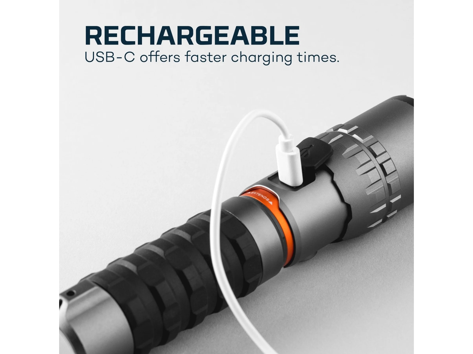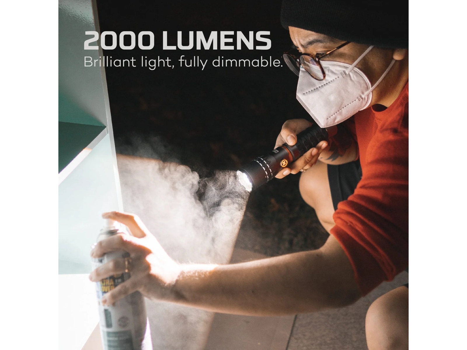 Oppladbar, vanntett (IPX7) og ekstremt allsidig, SLYDE KING 2K har en 2.000 lumen lommelykt med 4x zoom, og et 500 lumen C•O•B arbeidslys. Hver lysmodus er dimbar med programmerbart minne. 2K har også et ergonomisk gummiert grep og kraftig magnetisk base.