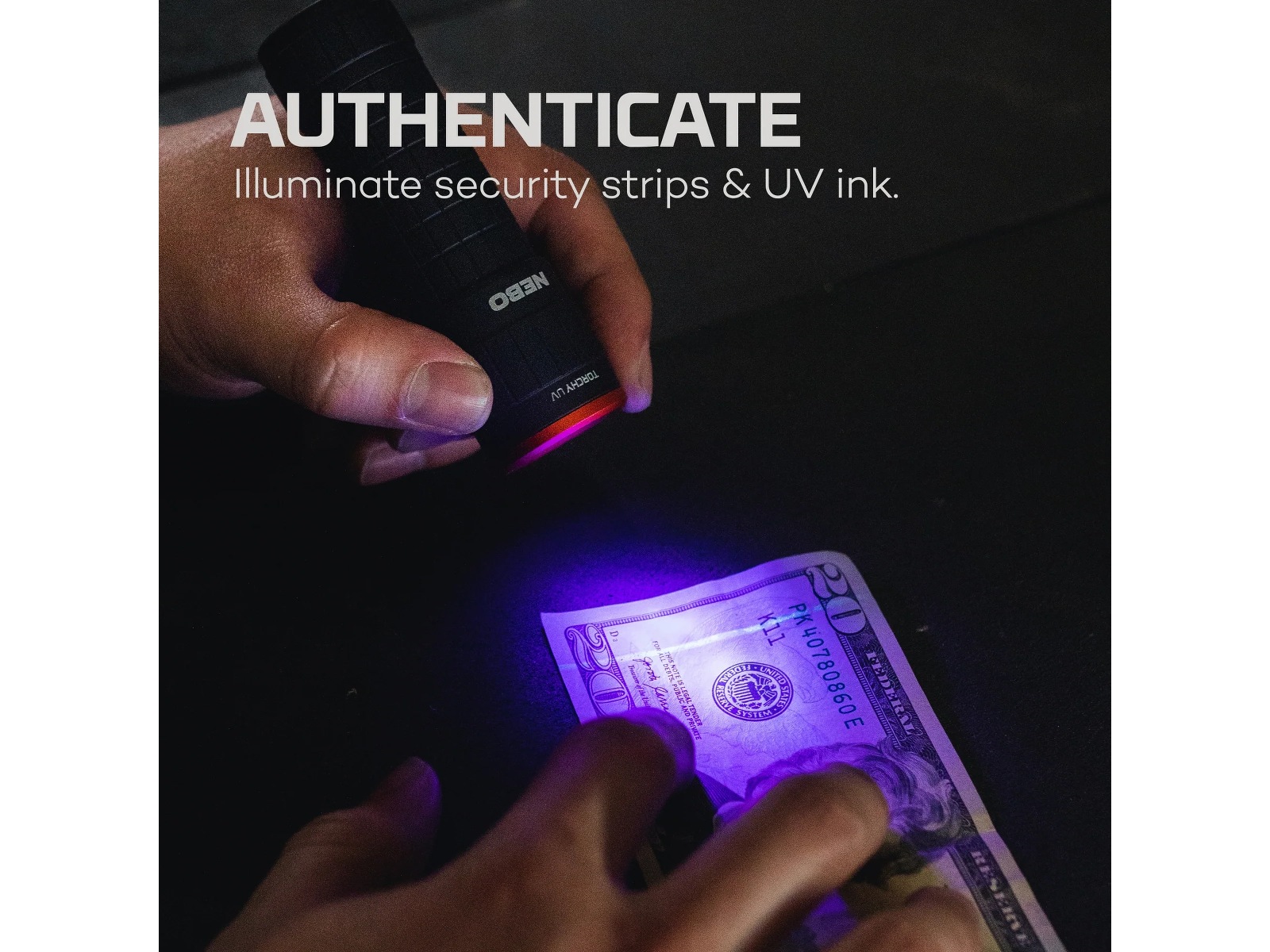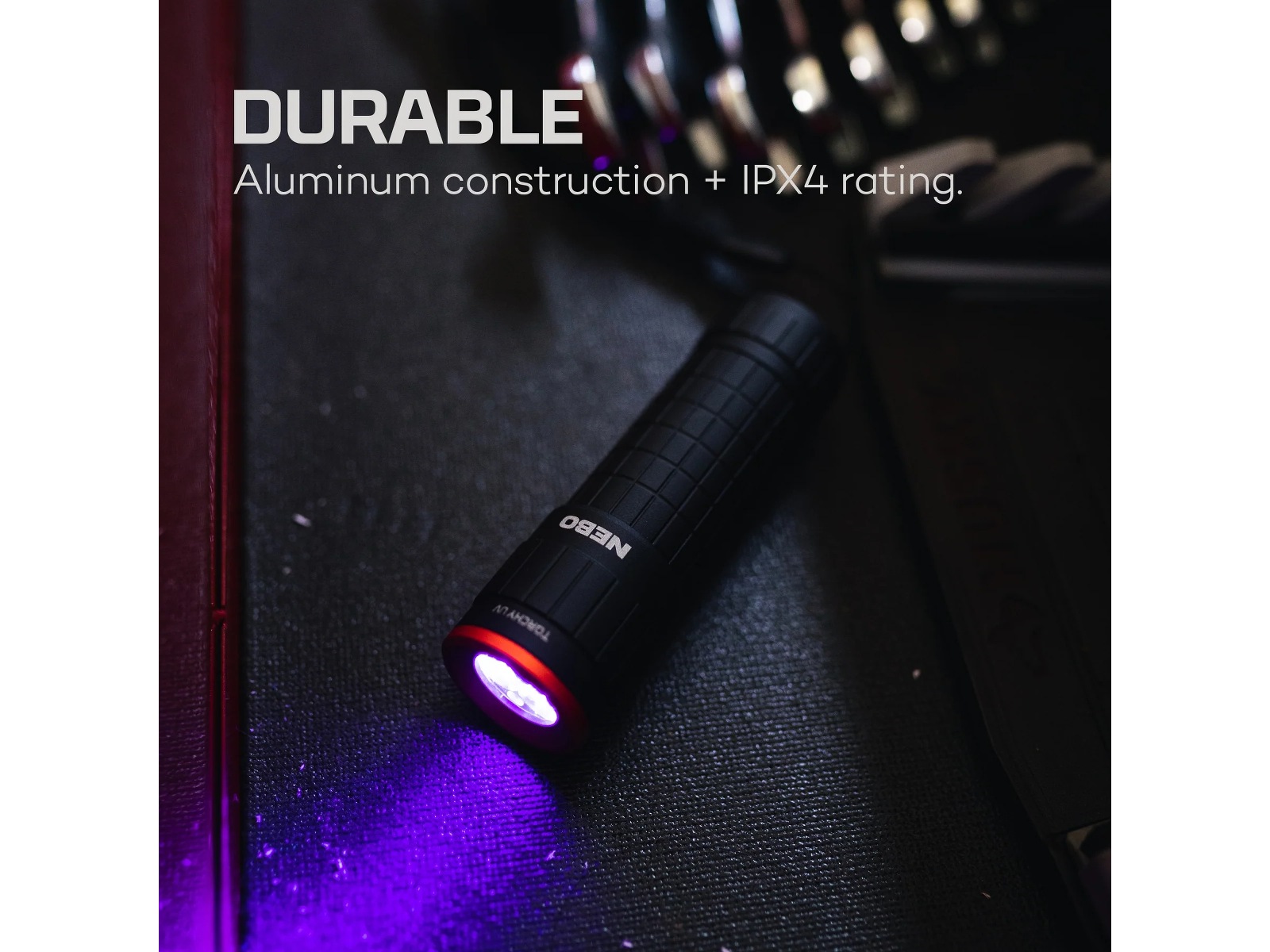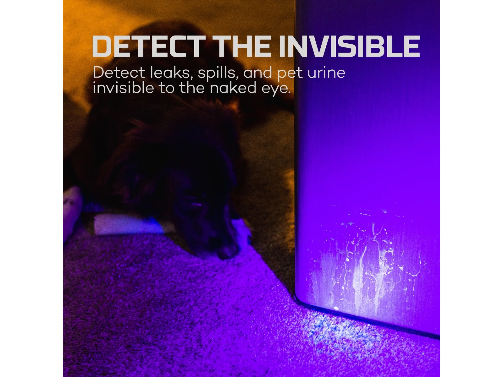 Se det usynlige med Torchy UV og sort lys. Konstruert med Dual UVA (Ultraviolet A) teknologi for bedre deteksjon, inspeksjon og autentisering både i bolig- og næringsapplikasjoner. Bredspektret bølgelengder gir en blandet belysning og fluorescens som er ideell for oppgaver på nært hold som deteksjon av dyreurin, inspeksjon av billekkasjer med UV-farger, skadedyrsdeteksjon som skorpioner, rengjøringsinspeksjoner og autentisering av valuta. Kompakt og lommevennlig, denne lampen er konstruert med et slitesterkt aluminiumhus som er støt- og vannbestandig. Batteridrevet med tre AAA-batterier (inkludert).