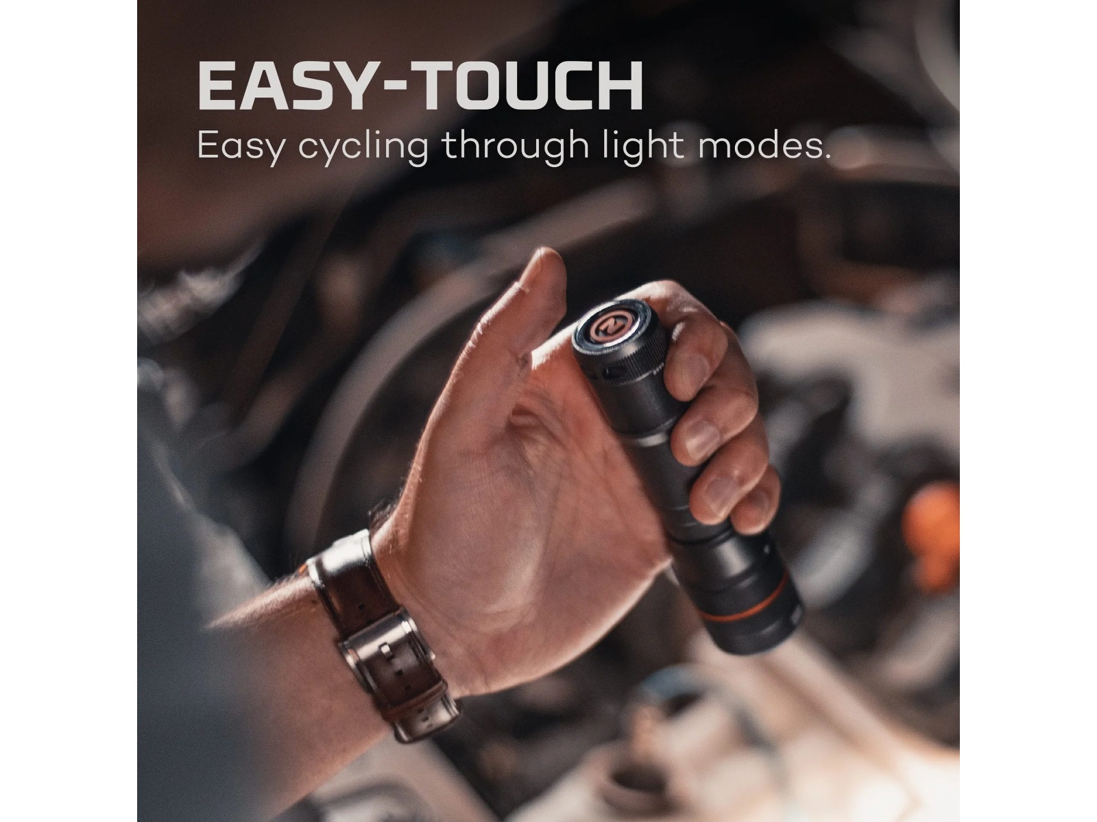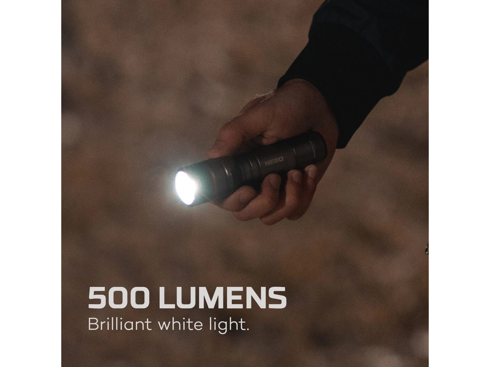 Newton™ 500 lommelykten fra NEBO er en kraftig håndholdt lommelykt med 4 lysmoduser. Den enkle bakmonterte bryteren gjør det enkelt å veksle mellom moduser, og den kraftige LED-en i denne lommelykten kan lyse opp 146 meter.
