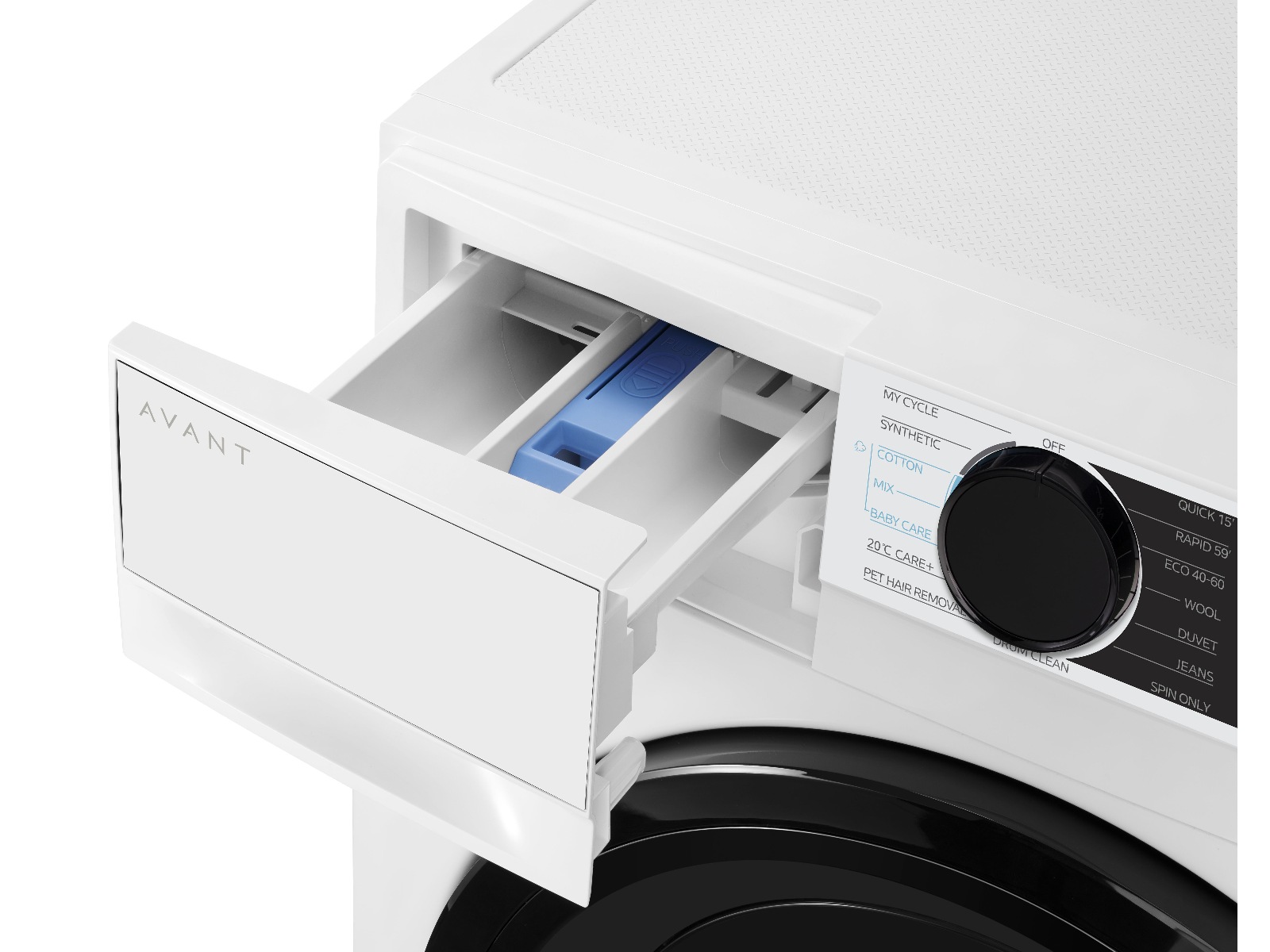 Denne frontmatede vaskemaskinen fra Avant har en stor kapasitet på 12 kg, noe som gjør den ideell for store husholdninger eller for deg som vasker mye. Med en bred 480 mm dør og en 330 mm hytteventil blir det lettere å håndtere store og tunge plagg som kåper og tepper. Maskinen tilbyr dessuten en vannkubetrommel for effektiv flekkfjerning og friske klær. For dyreeiere er funksjonen Pet Hair Removal perfekt for å fjerne hår og lo fra klær og tekstiler. Med allsidige vaskeprogrammer, inkludert hurtigvask, ullprogram og dampvask, samt praktiske funksjoner som Forsinket Start og hygienisk trommelrengjøring, får du både skånsom og grundig vask. Den energieffektive invertermotoren gir stille drift og lengre levetid, samtidig som tre vannstrømningsmoduser sikrer optimalt vaskeresultat.