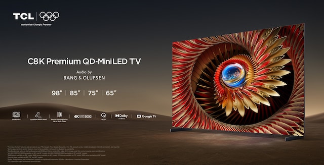 TCL Premium C8K QD-Mini LED med opptil 3840 dimmesoner* er et visuelt mesterverk som presenterer uhyre livfulle visuelle bilder med naturtro farger og en ultra høy kontrastforhold. Den har også høyere maksimal lysstyrke, et bredere fargespekter, større skjermstørrelse, og lengre levetid, noe som gjør den til en ledende skjermteknologi.
