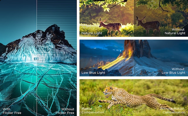Med en rekke teknologier for øyepleie som lavt blått lys, naturlig lysoptimalisering, flimmerfri, osv. fortsetter C8K å beskytte øyehelsen din. Alt du trenger å gjøre er å nyte filmer og spill.
