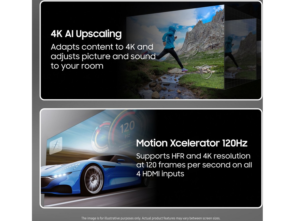 Kraftfull NQ4 AI Gen2-prosessor benytter AI-teknologi som tilpasser innholdet til 4K og justerer bilde og lyd etter rommet.