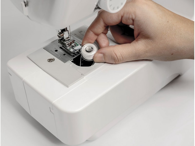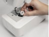 Alle Brothers symaskiner kommer med et smart drop-in spolesystem, som ikke bare gjør det enkelt å bytte spoler, men også går jevnt og lydløst (selv i høy hastighet). Du legger ganske enkelt spolen horisontalt ned i maskinen, noe som gjør det superenkelt å tre maskinen. Med det gjennomsiktige lokket er du sikret at det alltid er riktig fargetråd som er i maskinen.