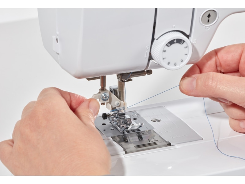Du kan selv velge om nålen skal stoppe oppe eller nede i stoffet hver gang du løfter foten av pedalen - en funksjon som gir mer kontroll og flyt i arbeidet. I tillegg har maskinen en start/stopp knapp som et alternativ til fotpedalen.