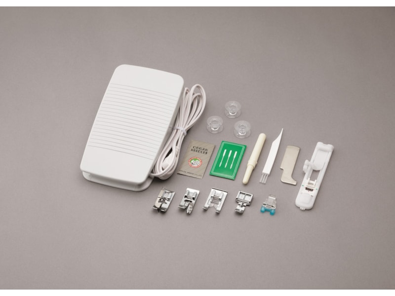 - Trykkfot: sikksakkfot, knapphullsfot, knappisyingsfot, overlockfot, zip-fot, blindsøm og monogramsyingsyfot