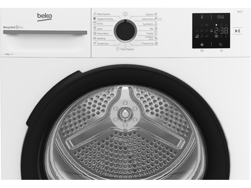 De viktigste innovasjonene Beko gjør nå er de som bidrar til mer bærekraftige produkter. Ett av tiltakene er å benytte mer resirkulert plast i produksjonen. Plastkomponentene i denne tørketrommelen består av minimum 27% resirkulert plast. I 2023 ble det totalt brukt over 5922 tonn* avfallsplast til dette formålet.