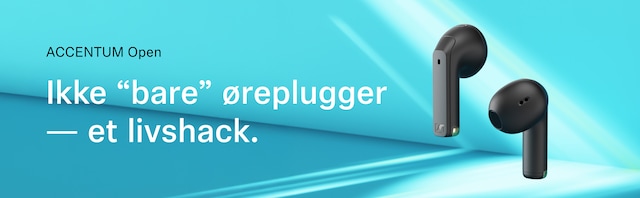 ACCENTUM Open-øreplugger er så komfortable at du nesten ikke merker at de er der og det perfekte valget hvis du synes øregangskonstruksjoner er for isolerende eller for store til å passe godt. I tillegg betyr den åpne designen med skaftet at du unngår ubehagelig trykk mot øret og slipper å ha noe i øregangen. De lette, pustende ørepluggene holder seg på plass og føles vektløse hele dagen, med et praktisk skaft som gjør dem enkle å sette inn og ta ut når du vil.