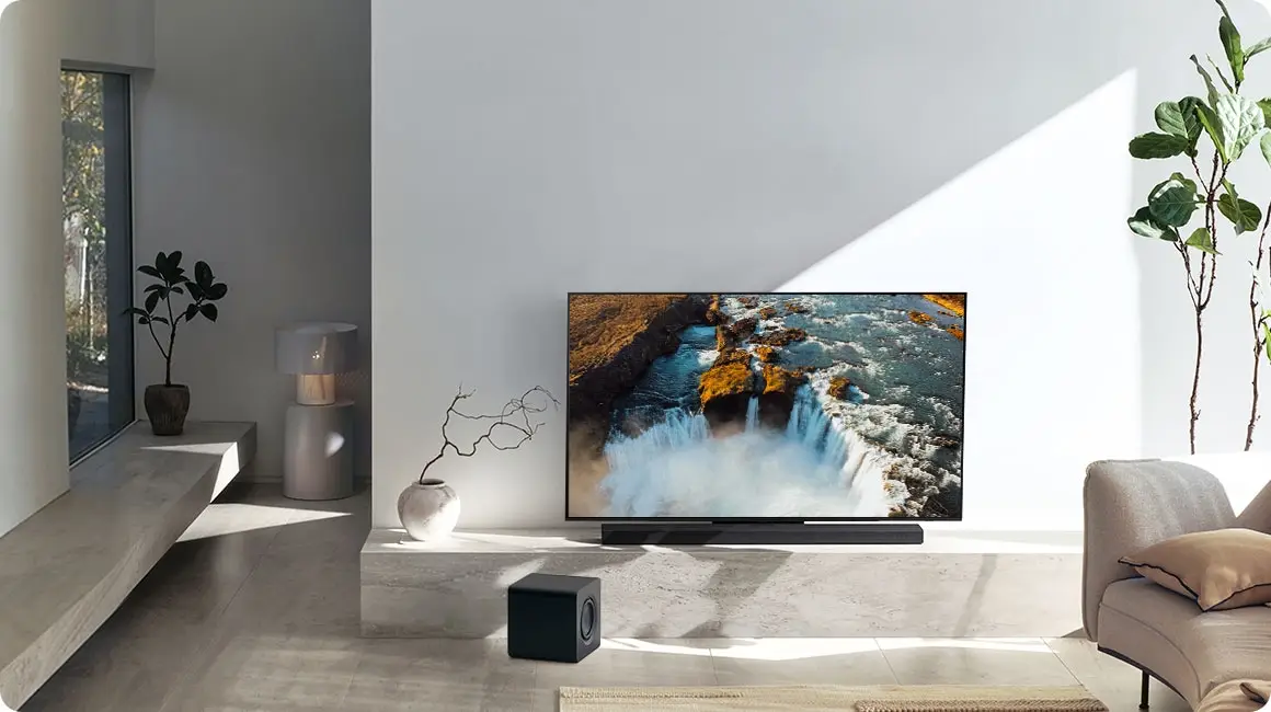 Høyttalerne er utformet for å fungere som både front- og oppadrettede kanaler, og justerer automatisk utgangsretningen basert på lydplankenes plassering.